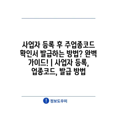 사업자 등록 후 주업종코드 확인서 발급하는 방법? 완벽 가이드! | 사업자 등록, 업종코드, 발급 방법