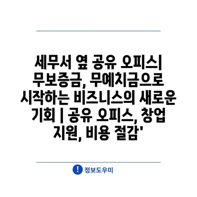 세무서 옆 공유 오피스| 무보증금, 무예치금으로 시작하는 비즈니스의 새로운 기회 | 공유 오피스, 창업 지원, 비용 절감’