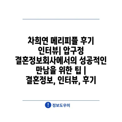 차희연 메리피플 후기 인터뷰| 압구정 결혼정보회사에서의 성공적인 만남을 위한 팁 | 결혼정보, 인터뷰, 후기
