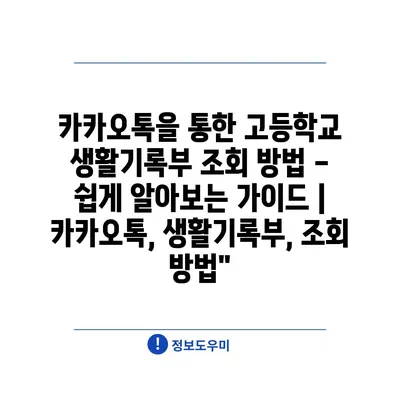 카카오톡을 통한 고등학교 생활기록부 조회 방법 – 쉽게 알아보는 가이드 | 카카오톡, 생활기록부, 조회 방법”