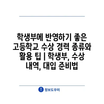 학생부에 반영하기 좋은 고등학교 수상 경력 종류와 활용 팁 | 학생부, 수상 내역, 대입 준비법