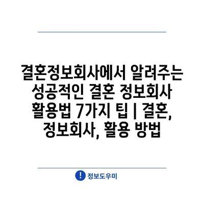 결혼정보회사에서 알려주는 성공적인 결혼 정보회사 활용법 7가지 팁 | 결혼, 정보회사, 활용 방법