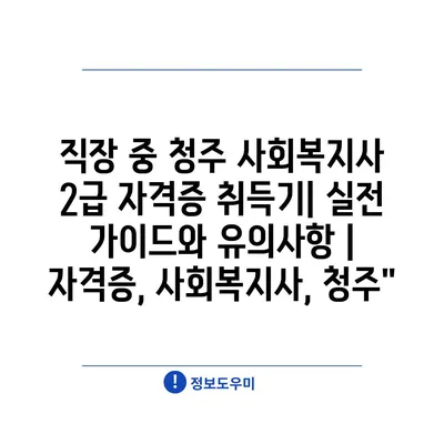 직장 중 청주 사회복지사 2급 자격증 취득기| 실전 가이드와 유의사항 | 자격증, 사회복지사, 청주”
