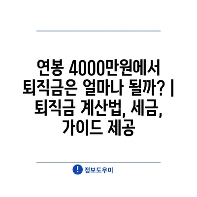 연봉 4000만원에서 퇴직금은 얼마나 될까? | 퇴직금 계산법, 세금, 가이드 제공
