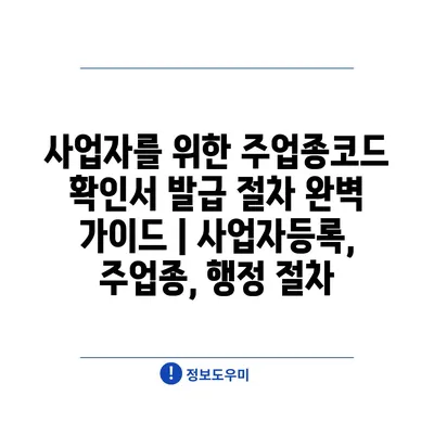 사업자를 위한 주업종코드 확인서 발급 절차 완벽 가이드 | 사업자등록, 주업종, 행정 절차