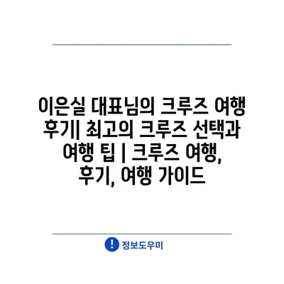 이은실 대표님의 크루즈 여행 후기| 최고의 크루즈 선택과 여행 팁 | 크루즈 여행, 후기, 여행 가이드
