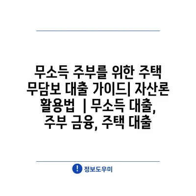 무소득 주부를 위한 주택 무담보 대출 가이드| 자산론 활용법 | 무소득 대출, 주부 금융, 주택 대출