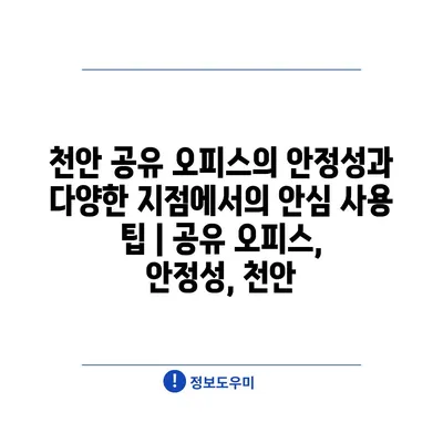 천안 공유 오피스의 안정성과 다양한 지점에서의 안심 사용 팁 | 공유 오피스, 안정성, 천안