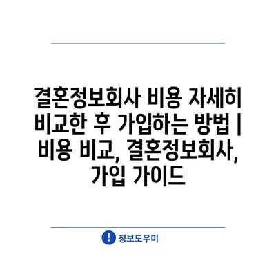 결혼정보회사 비용 자세히 비교한 후 가입하는 방법 | 비용 비교, 결혼정보회사, 가입 가이드