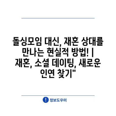 돌싱모임 대신, 재혼 상대를 만나는 현실적 방법! | 재혼, 소셜 데이팅, 새로운 인연 찾기”