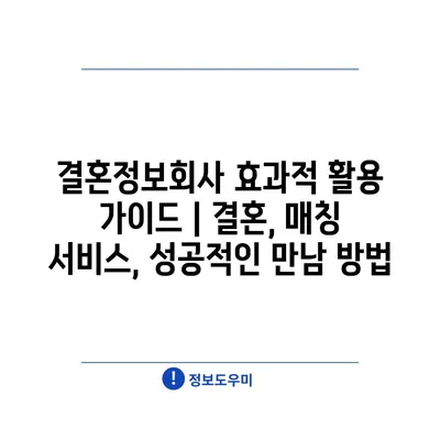 결혼정보회사 효과적 활용 가이드 | 결혼, 매칭 서비스, 성공적인 만남 방법