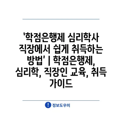 ‘학점은행제 심리학사 직장에서 쉽게 취득하는 방법’ | 학점은행제, 심리학, 직장인 교육, 취득 가이드