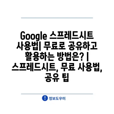 Google 스프레드시트 사용법| 무료로 공유하고 활용하는 방법은? | 스프레드시트, 무료 사용법, 공유 팁