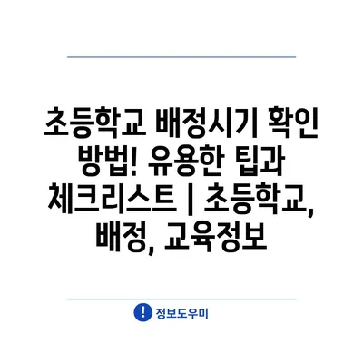 초등학교 배정시기 확인 방법! 유용한 팁과 체크리스트 | 초등학교, 배정, 교육정보