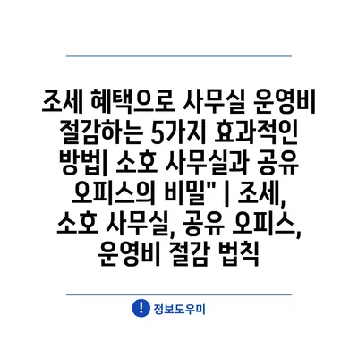 조세 혜택으로 사무실 운영비 절감하는 5가지 효과적인 방법| 소호 사무실과 공유 오피스의 비밀” | 조세, 소호 사무실, 공유 오피스, 운영비 절감 법칙
