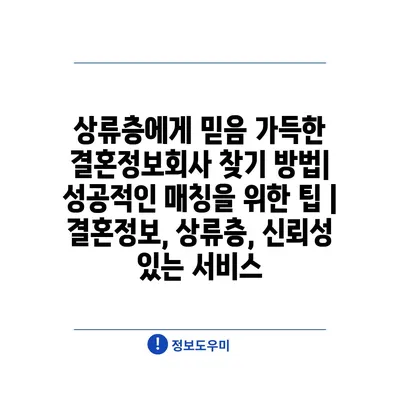 상류층에게 믿음 가득한 결혼정보회사 찾기 방법| 성공적인 매칭을 위한 팁 | 결혼정보, 상류층, 신뢰성 있는 서비스