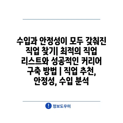 수입과 안정성이 모두 갖춰진 직업 찾기| 최적의 직업 리스트와 성공적인 커리어 구축 방법 | 직업 추천, 안정성, 수입 분석