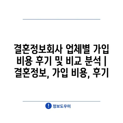 결혼정보회사 업체별 가입 비용 후기 및 비교 분석 | 결혼정보, 가입 비용, 후기