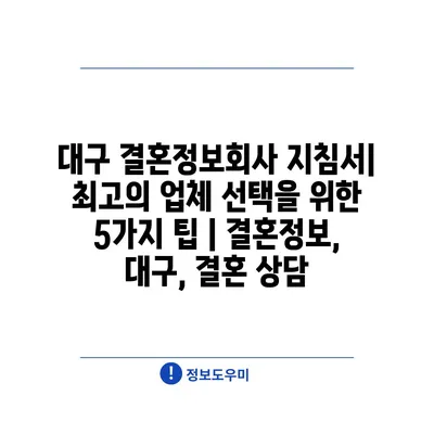 대구 결혼정보회사 지침서| 최고의 업체 선택을 위한 5가지 팁 | 결혼정보, 대구, 결혼 상담