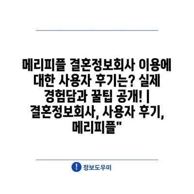 메리피플 결혼정보회사 이용에 대한 사용자 후기는? 실제 경험담과 꿀팁 공개! | 결혼정보회사, 사용자 후기, 메리피플”