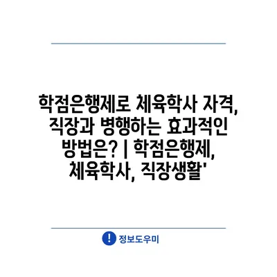 학점은행제로 체육학사 자격, 직장과 병행하는 효과적인 방법은? | 학점은행제, 체육학사, 직장생활’