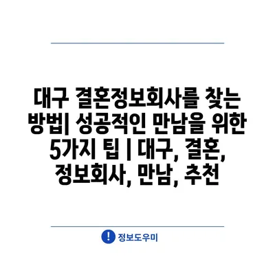 대구 결혼정보회사를 찾는 방법| 성공적인 만남을 위한 5가지 팁 | 대구, 결혼, 정보회사, 만남, 추천