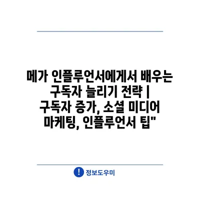 메가 인플루언서에게서 배우는 구독자 늘리기 전략 | 구독자 증가, 소셜 미디어 마케팅, 인플루언서 팁”