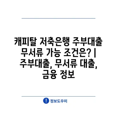 캐피탈 저축은행 주부대출 무서류 가능 조건은? | 주부대출, 무서류 대출, 금융 정보