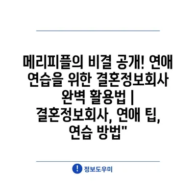 메리피플의 비결 공개! 연애 연습을 위한 결혼정보회사 완벽 활용법 | 결혼정보회사, 연애 팁, 연습 방법”