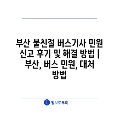 부산 불친절 버스기사 민원 신고 후기 및 해결 방법 | 부산, 버스 민원, 대처 방법