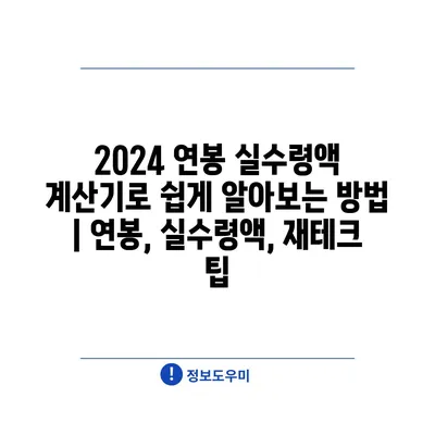 2024 연봉 실수령액 계산기로 쉽게 알아보는 방법 | 연봉, 실수령액, 재테크 팁