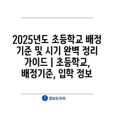 2025년도 초등학교 배정 기준 및 시기 완벽 정리 가이드 | 초등학교, 배정기준, 입학 정보