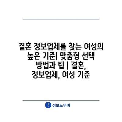 결혼 정보업체를 찾는 여성의 높은 기준| 맞춤형 선택 방법과 팁 | 결혼, 정보업체, 여성 기준