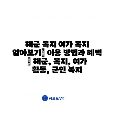 해군 복지 여가 복지 알아보기| 이용 방법과 혜택 | 해군, 복지, 여가 활동, 군인 복지