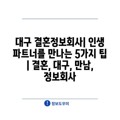 대구 결혼정보회사| 인생 파트너를 만나는 5가지 팁 | 결혼, 대구, 만남, 정보회사