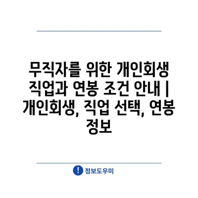 무직자를 위한 개인회생 직업과 연봉 조건 안내 | 개인회생, 직업 선택, 연봉 정보