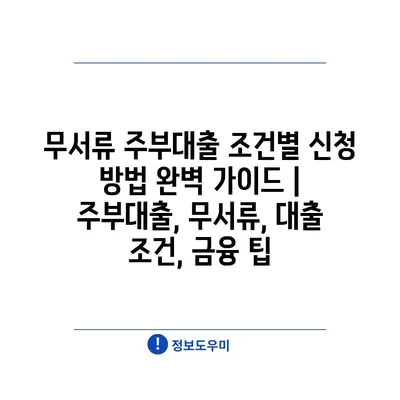 무서류 주부대출 조건별 신청 방법 완벽 가이드 | 주부대출, 무서류, 대출 조건, 금융 팁