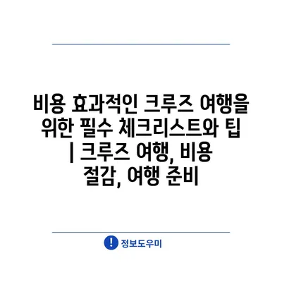 비용 효과적인 크루즈 여행을 위한 필수 체크리스트와 팁 | 크루즈 여행, 비용 절감, 여행 준비